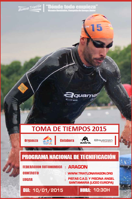 Dentro del Plan de Tecnificación Deportiva promovido por la Federación Española de Triatlon (FETRI), en el que colaboramos las diferentes Federaciones Territoriales, vamos a poner de nuevo en marcha la “Jornada de toma de tiempos del año 2015”. Esta orientada a diferentes categorías tanto masculinas como femeninas y se establecen una serie de distancias a medir tanto en carrera a pie como en natación. La convocatoria está dirigida a todos los deportistas infantil, cadete, junior, y Paratriatlón.