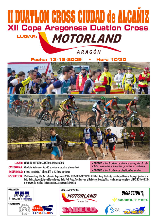 El II Duatlón Cros Ciudad de Alcañiz-Motorland Aragón, prueba valedera para la Copa Aragonesa de Duatlón Cros, tendrá lugar en el Circuito de Auto-Cros de Motorland Aragón, a partir de las 10:30h.