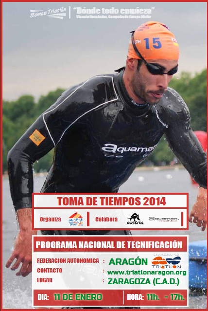 Inscripciones: Hasta el miércoles 8 de enero a las 19h. Realizar preinscripción en esta misma página web, sin formalizar ningún pago y el sistema directamente os asignará en la lista de inscritos. La mayoría de los participantes o bien disponen de licencia deportiva escolar de la DGA para este curso o bien están federados (sería importante que para ese día ya tuvierais actualizada la ficha federada de 2014), pero para los que no lo estén dispondremos de una licencia de día para esta toma de tiempos y el coste de la misma correrá a cargo de la Federación Aragonesa de Triatlon (FATRI).