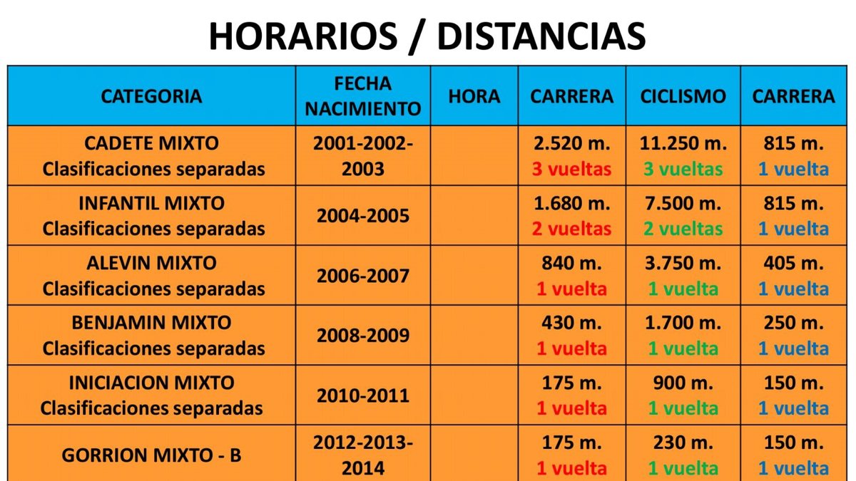 Distancias: 7 km. carrera a pie - 20 km.ciclismo - 10 km. esquí de fondo