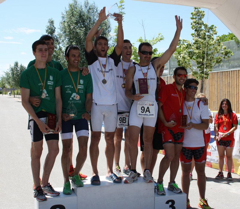 La victoria de la prueba y el Campeonato de Aragón para el TRIATLÓN EUROPA que presentó su candidatura al triunfo en un primer relevo explosivo de FRANCISCO "KIKO" MARCO que ya marcó diferencia al resto de rivales. HECTOR REVUELTA mantuvo el alto nivel de su compañero y finalmente RICARDO SIMON terminó por dejar claro el triunfo de su equipo con el mejor tiempo de todos los triatletas: 00:18:21 para los 250 metros de natación, 4400 metros de ciclismo y 1500 metros de carrera a pie.