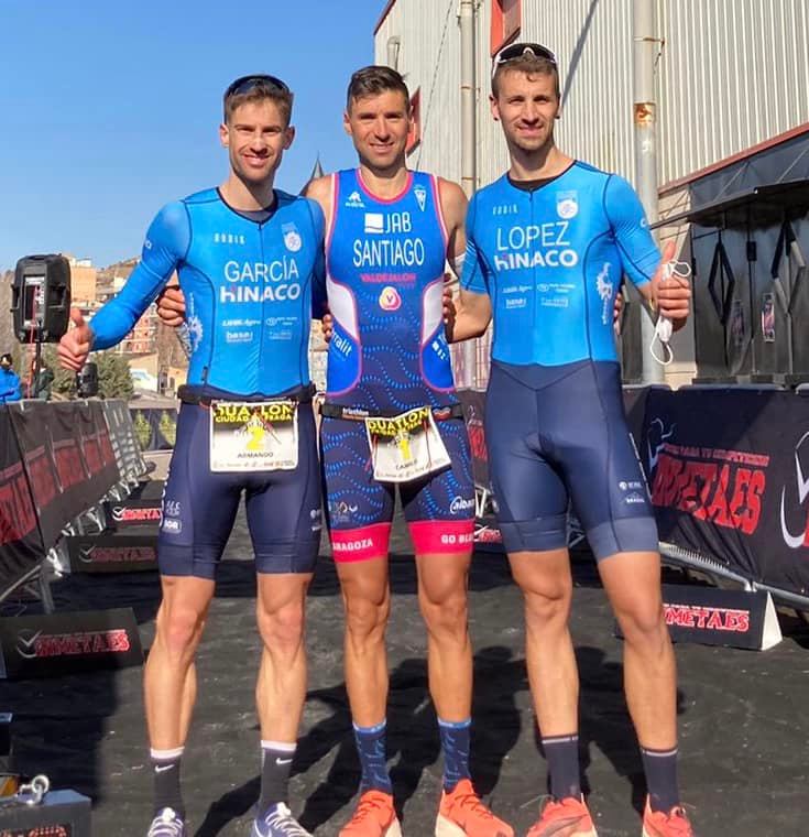 En la competición masculina, Camilo Santiago (JAB Triatlón Helios) ha impuesto su potencial en la carrera a pie y un gran parcial ciclista para alzarse con la victoria con un tiempo de 57:08, por delante de otros dos grandes especialistas de la disciplina como son Armando García y Alberto López (ambos del Hinaco C.C. Monzón) que han sido segundo y tercero respectivamente. La nueva incorporación heliófila para esta temporada elava aún más si cabe el nivel de las competiciones de duatlón en Aragón.