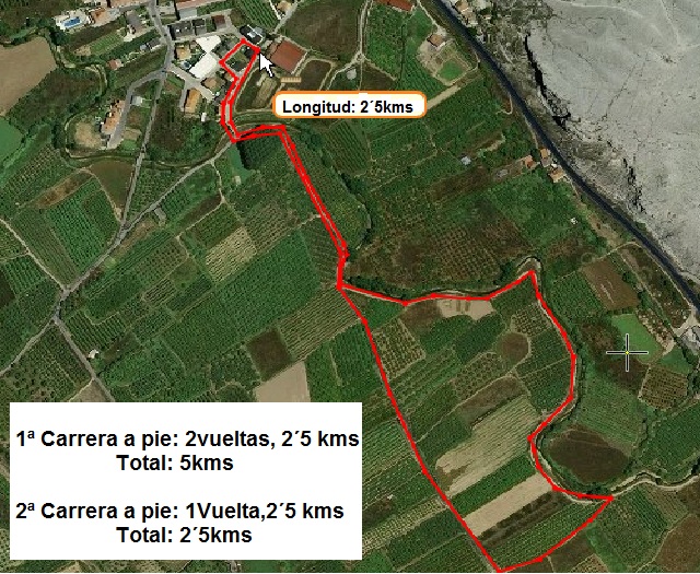 Distancias: 5km de carrera a pie (2 vueltas), 20km de ciclismo (2 vueltas) y 2,5km de carrera a pie (1 vuelta)