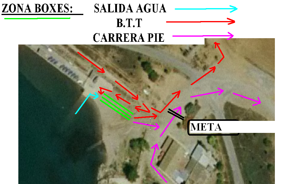 Distancia: 1.000m de natatación (2 vueltas), 20km de btt (4 vueltas) y 6km de carrera a pie (2 vueltas)