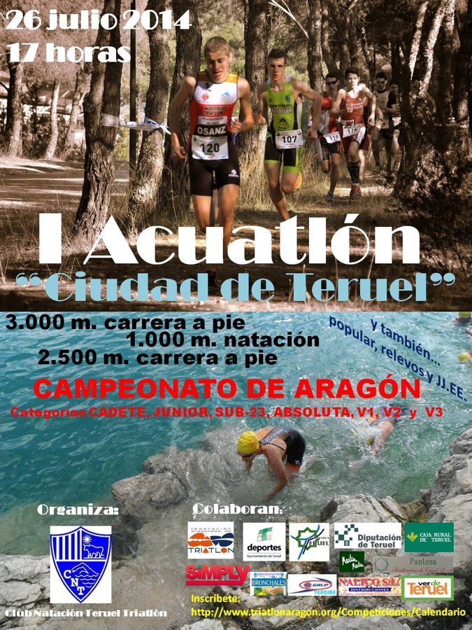 El I Acuatlón "Ciudad de Teruel" que se celebrará el 26 de julio será valedero como Campeonato de Aragón de Acuatlón 2014. Además, ese mismo día se celebrará una competición escolar de Acuatlón enmarcada dentro de los Juegos Escolares de Aragón para nuestras categorías base.